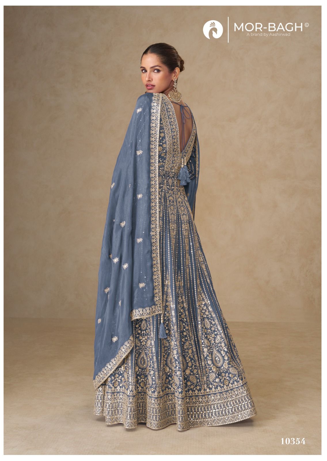 PRE-ORDER ITEM - DELIVERY TIME IS 2-3 WEEKS Ready to wear - Saree style gown with a jacket in pure Georgette fabric with heavy embroidery. Designed as free size – can be easily altered to fit your measurements. Maximum chest width is 42”