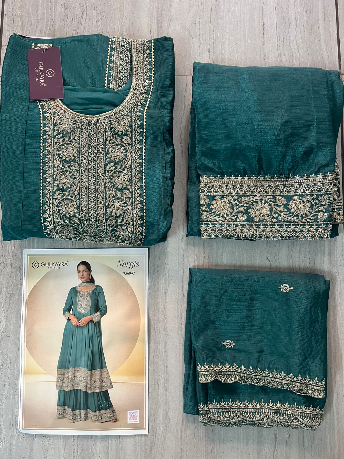 Chinon fabric with thread and zari work with stonework. Georgette dupatta