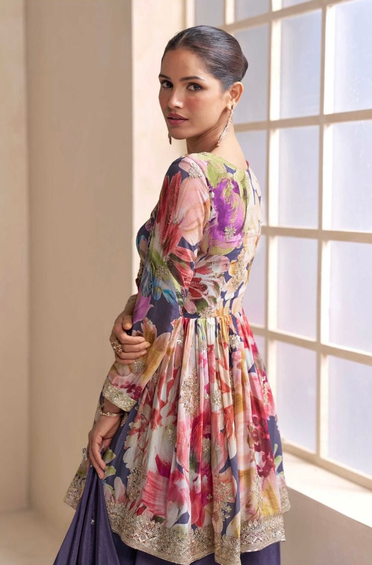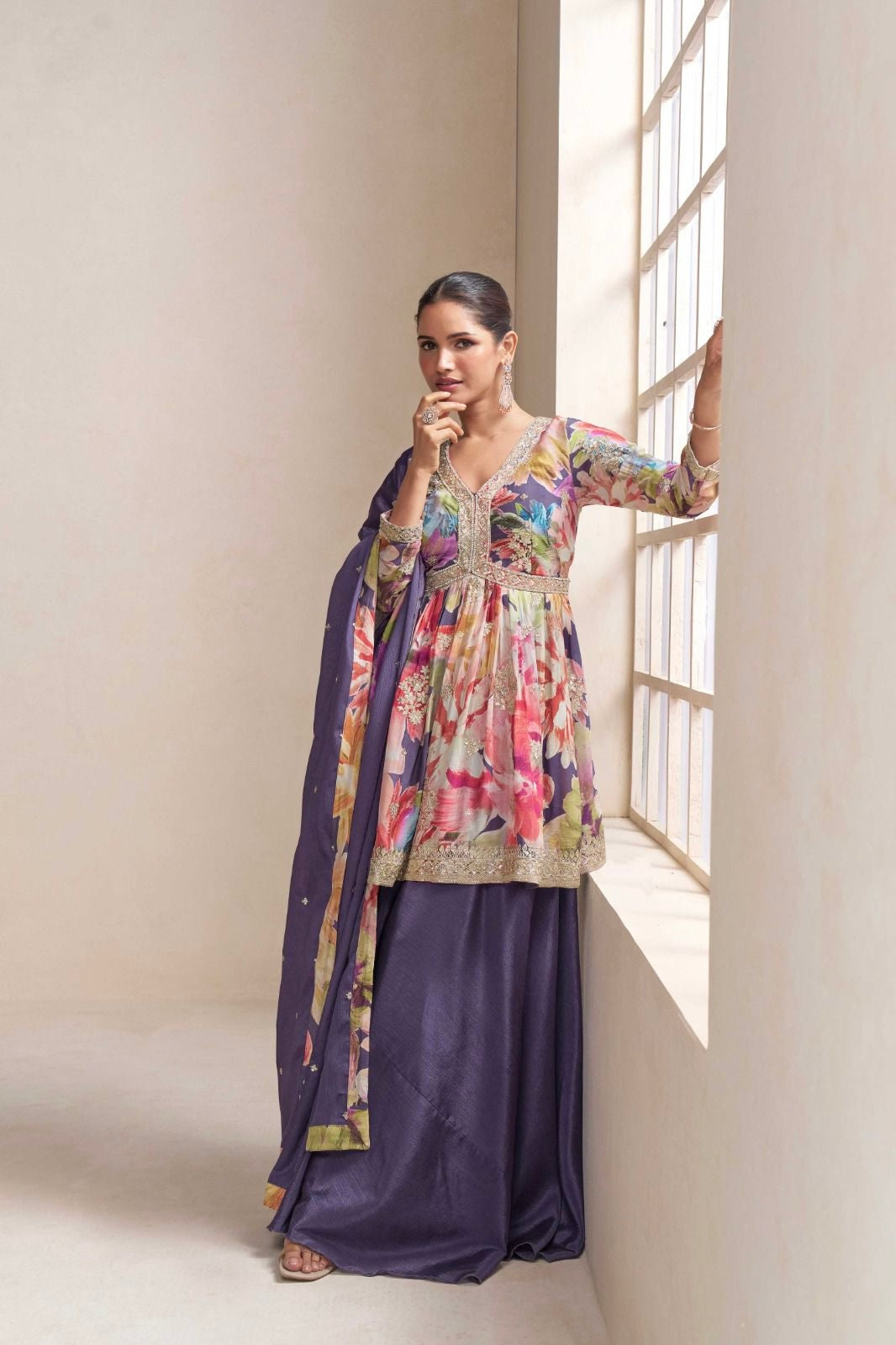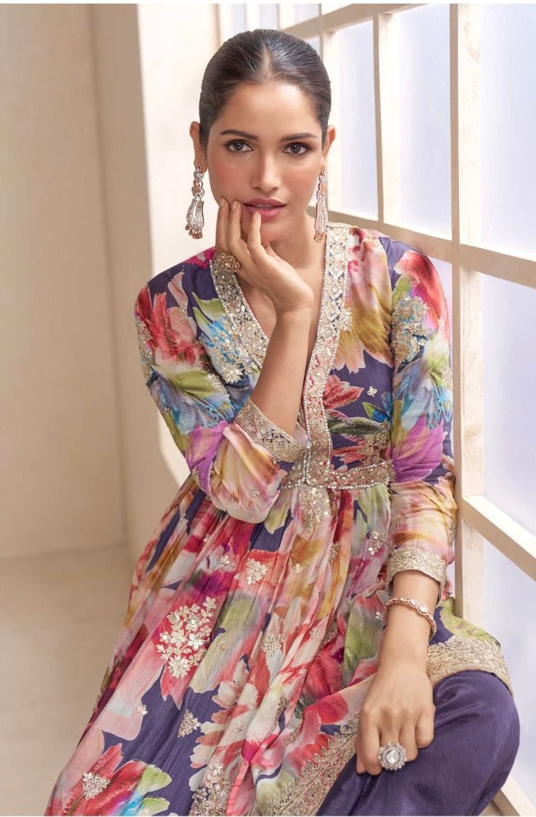 Chinon fabric with thread and zari work with stonework.