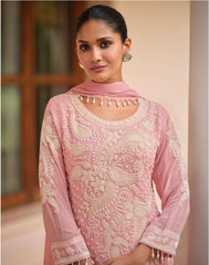 PRE ORDER ITEM - DELIVERY TIME IS 2-3 WEEKS Ready to wear suit in Georgette fabric with embroidery. Mauve georgette heavily embroidered dupatta Size 34/XS