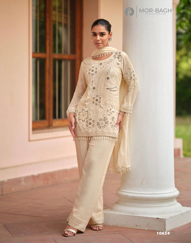 PRE-ORDER ITEM - DELIVERY TIME IS 2-3 WEEKS Ready to wear suit in Georgette fabric with stonework and mirrorwork Size: 42/XL Designed as free size – can be easily altered to fit your measurements.