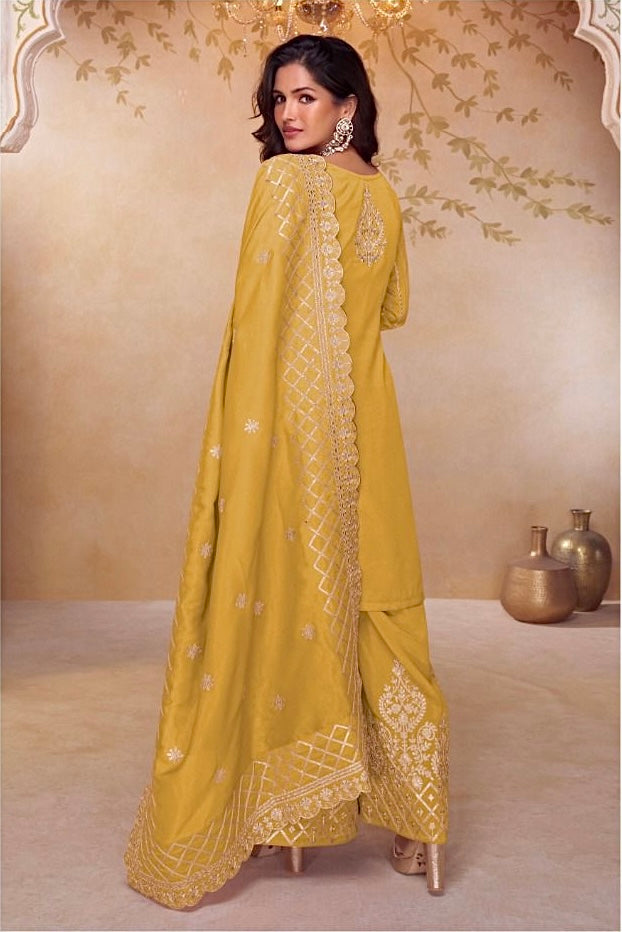 Simar silk fabric with thread and zari work with stonework. Georgette dupatta