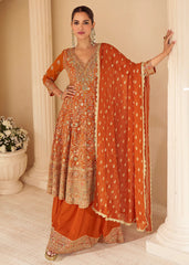 Chinon fabric with thread and zari work with stonework front and back. Georgette dupatta